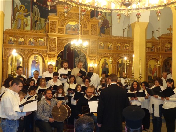 Η πολυπληθής χορωδία της Σχολής Βυζαντινής Μουσικής «Χρύσανθος εκ Μαδύτου ο