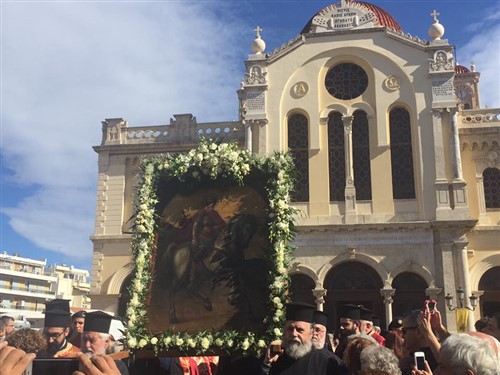 Κρήτης στο Αρκαλοχώρι 3-4 Ιουλίου 2018 Με πάνδημη συμμετοχή των ευσεβών κατοίκων της πόλεως του Αρκαλοχωρίου και της ευρύτερης περιοχής της Μητροπόλεώς μας πραγματοποιήθηκε και φέτος η Πανήγυρη του Ιερού Μητροπολιτικού Ναού Αγίου Ανδρέα Αρχιεπισκόπου Κρήτης του Ιεροσολυμίτου. Την Τρίτη 3 Ιουλίου και ώρα 18:00 το απόγευμα πραγματοποιήθηκε η υποδοχή των Ιερών Λειψάνων των Αγίου Γρηγορίου του Παλαμά Αρχιεπίσκοπου Θεσσαλονίκης και του εθνομάρτυρος Αγίου Γρηγορίου του Ε’ του εθνομάρτυρα....Περισσότερα |