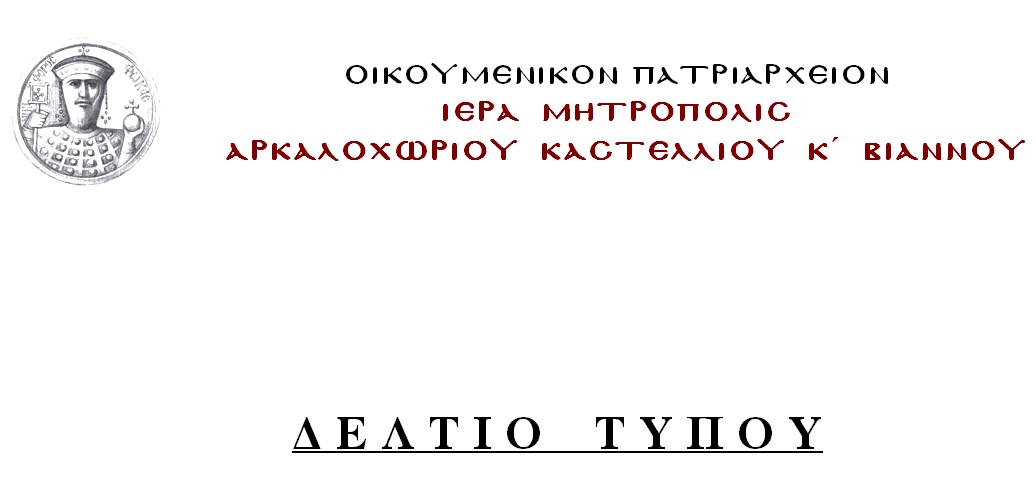 Δελτίο Τύπου Ιεράς Μητροπόλεως Αρκαλοχωρίου,