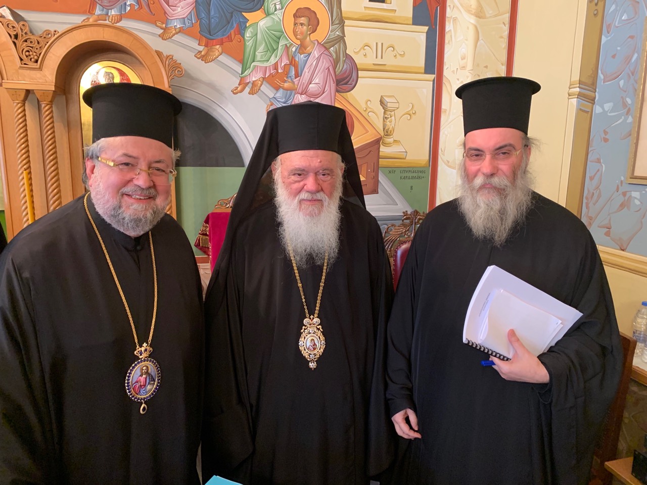 Κατά την σημερινή συνάντηση των Αντιπροσωπειών, αφ’ ενός μεν της Εκκλησίας της Ελλάδος υπό την προεδρία του Μακαριωτάτου Αρχιεπισκόπου Αθηνών και πάσης Ελλάδος κ. Ιερωνύμου, αφ’ ετέρου δε, του Οικουμενικού Πατριαρχείου υπό την προεδρία του Σεβασμιωτάτου Μητροπολίτου Γέροντος Πριγκηποννήσων κ. Δημητρίου, στο Μέγαρο της Ιεράς Συνόδου της Εκκλησίας της Ελλάδος, η οποία διεξήχθη σε κλίμα αμοιβαίας κατανοήσεως, συνεργασίας και ενότητας, διαπιστώθηκε η απόλυτη σύμπνοια και ταύτιση απόψεων των δύο Εκκλησιών, τόσο επί των προτάσεων αναθεωρήσεως του Συντάγματος όσο και επί της διατηρήσεως του ισχύοντος καθεστώτος μισθοδοσίας του Ορθοδόξου Ιερού Κλήρου.