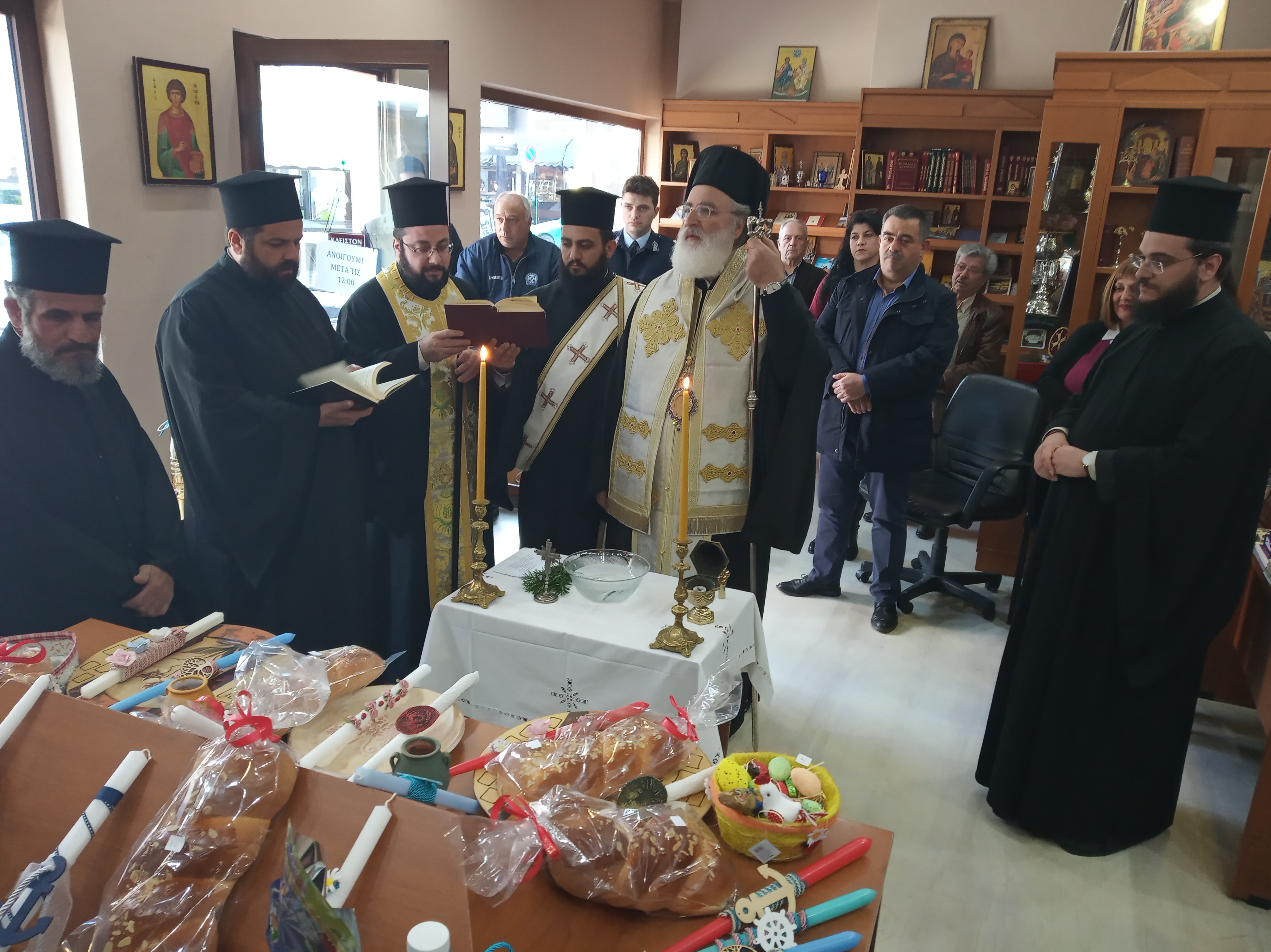 Την Τετάρτη 17 Απριλίου, ο Σεβασμιωτατος κ. Ανδρέας τέλεσε τον αγιασμό για την έναρξη του πασχαλινού παζαριού αγάπης στο χώρο του βιβλιοπωλείου της Ιεράς Μητροπόλεώς μας στο Αρκαλοχώρι.