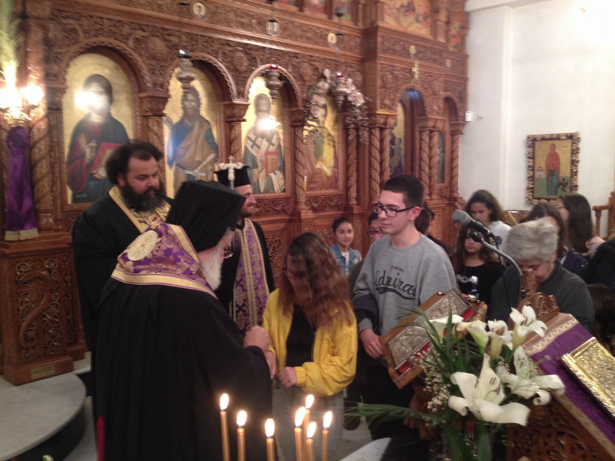 Στη συνέχεια μετέβη στον Ιερό Ναό Αγίων Αποστόλων Πέτρου και Παύλου Άρβης όπου χοροστάτησε στην ακολουθία του Όρθρου της Μ. Πέμπτης ευχόμενος πατρικά στο εκκλησίασμα καλό υπόλοιπο της Μεγάλης Εβδομάδος και καλή Ανάσταση.