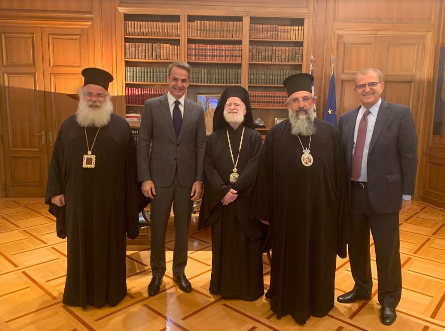 Αντιπροσωπεία της Ιεράς Επαρχιακής Συνόδου της Εκκλησίας Κρήτης, αποτελούμενη από τον Σεβ. Αρχιεπίσκοπο Κρήτης κ.κ. Ειρηναίο, Πρόεδρο Αυτής καί τούςΣεβ. Μητροπολίτες Ρεθύμνης καί Αυλοποτάμου κ. Ευγένιο καίΙεραπύτνης και Σητείας κ. Κύριλλο, μετά από σχετικό αίτημα της Εκκλησίας της Κρήτης, το οποίο έγινε αποδεκτό, επισκέφθηκε τον Εξοχώτατο κ. Κυριάκο Μητσοτάκη, Πρωθυπουργό της Ελλάδος, στο Μέγαρο Μαξίμου, την Τετάρτη, 9 Οκτωβρίου 2019. Στη συνάντηση ήταν παρών και ο κ. Αντώνης Διαματάρης, Υφυπουργός Εξωτερικών.