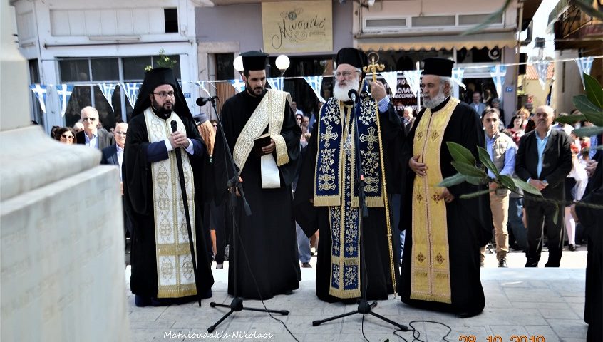 Την Δευτέρα 28η Οκτωβρίου ο Σεβ. Ποιμενάρχης μας μετέβη στον Ιερό Καθεδρικό Ναό της Μεταμορφώσεως του Σωτήρος στο Αρκαλοχώρι, όπου τέλεσε την Δοξολογία για την Εθνική Επέτειο του έπους του 1940,  παρουσία  καθηγητών και μαθητών των σχολείων του Αρκαλοχωρίου.  Ομιλία εκφώνησε  η κα Χαριτάκη Γεωργία,  Διευθύντρια του 1ου  Νηπιαγωγείου Αρκαλοχωρίου.