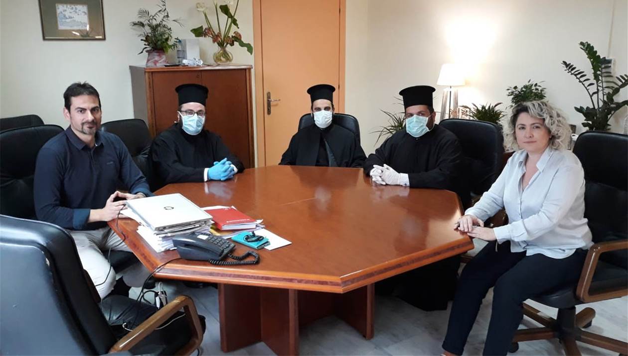 Οι Πατέρες της Ιεράς Μητρόπολης μετέφεραν στη Διοικήτρια τις ευχές του Σεβασμιωτάτου Μητροπολίτη Αρκαλοχωρίου, Καστελλίου και Βιάννου κ. Ανδρέα ενημερώνοντας την παράλληλα για τις αποφάσεις από τη σύσκεψη της Ιεράς Μητροπόλεως και αφορούν στην εθνική προσπάθεια ενίσχυσης της δημόσιας υγείας, αλλά και εκείνης της Υγειονομικής Περιφέρειας Κρήτης για την αντιμετώπιση του Κορωνοϊού Covid 19.