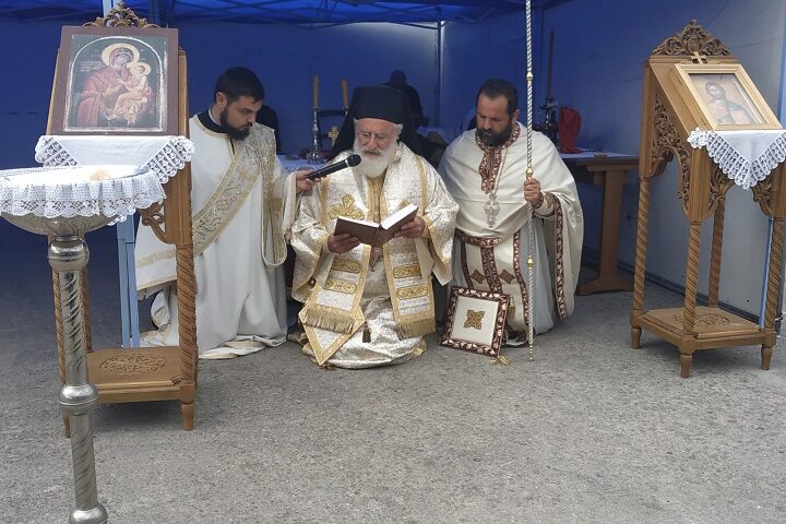 Αρχιερατική Θεία Λειτουργία στους σεισμόπληκτους στο Εκθεσιακό Κέντρο Αρκαλοχωρίου