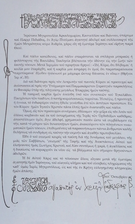 Συμπαράσταση του Οικουμενικού Πατριάρχου στους σεισμόπληκτους 3 Οκτωβρίου, 2021 Πατήρ Μιχαήλ Παπαϊωάννου Uncategorized Σεπτό Πατριαρχικό Γράμμα