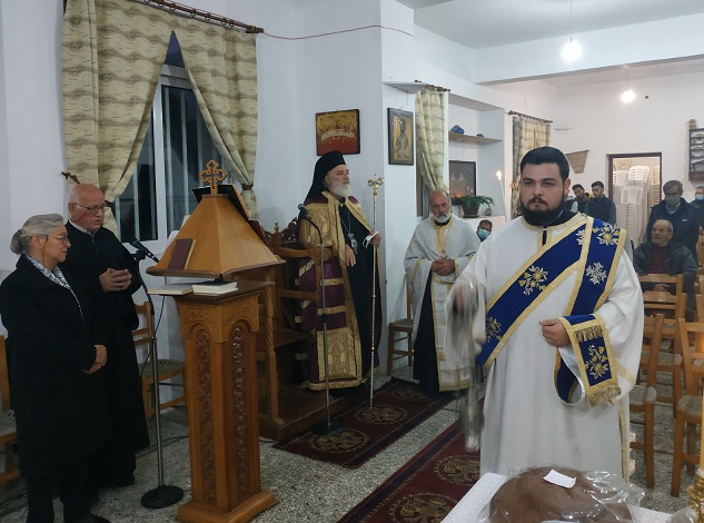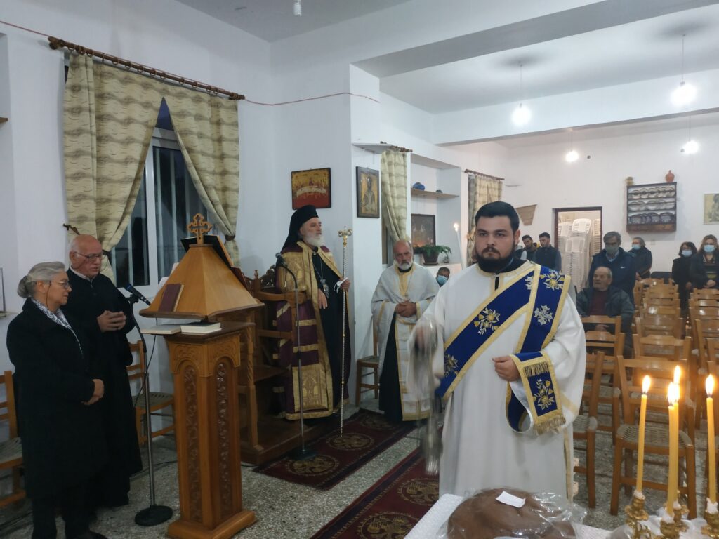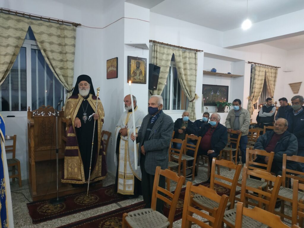 Το εσπέρας της 5ης Δεκεμβρίου ο Σεβ. Ποιμενάρχης μας κ. Ανδρέας χοροστάτησε του Εσπερινού σε ειδικά διαμορφωμένη αίθουσα, η οποία θα καλύπτει τις θρησκευτικές ανάγκες της Ενορίας αφού οι εκκλησίες της Ενορίας επλήγησαν από τον σεισμό της 27ης Σεπτεμβρίου.