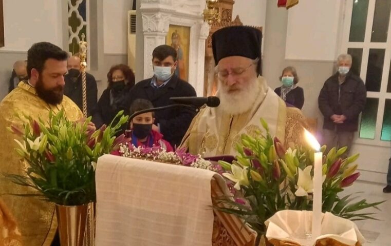 Την Παρασκευή 11 Μαρτίου ο Σεβ. Μητροπολίτης μας κ. Ανδρέας την 5 μμ χοροστάτησε στην Ακολουθία της Α’ Στάσεως των Χαιρετισμών προς την Υπεραγία Θεοτόκο στο εξωκλήσι της Παναγίας Μυρτιδιώτισσας Μελεσσών, πλαισιουμενος από τον εφημέριο της Ενορίας Πρωτοπρεσβύτερο Ελευθέριο Σκουλά και τον Διάκονο Μαρίνο Δασκαλάκη. Το εξωκλήσι της Παναγίας Μυρτιδιώτισσας καλύπτει τις ανάγκες του κυρίως Ναού της Ενορίας Μελεσσών, μιας και τόσο ο κυρίως Ναός του Ευαγγελισμού, αλλά και οι υπόλοιπες Εκκλησίες, επλήγησαν απ’ τον σεισμό της 27ης Σεπτεμβρίου. Το ιερό αναλόγιο διακόνησε ο Διάκονος Πέτρος Αράπογλου. Στην ακολουθία των Χαιρετισμών παραβρέθηκαν και χωριανοί οι οποίοι κατοικούν σε οικίσκους της περιοχής. Κατά την διάρκεια της ακολουθίας ανέγνωσε ο εφημέριος, το ανακοινωθέν της Ιεράς Επαρχιακής Συνόδου της Εκκλησίας της Κρήτης για τα πολεμικά γεγονότα στην Ουκρανία και εψάλλη Δέηση υπέρ της καταπαύσεως του πολέμου εν Ουκρανία, επίσης τελέστηκε τρισάγιο για τον κτήτορα του Ναού