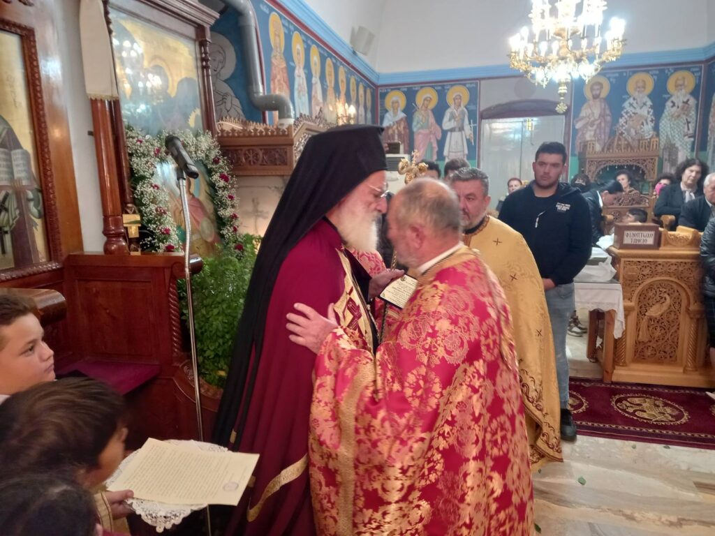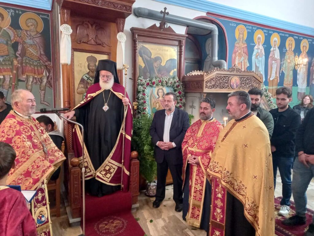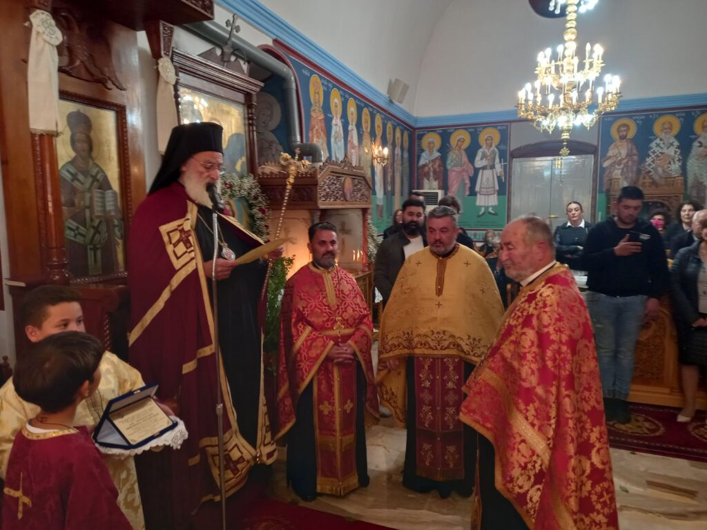 Την Δευτέρα 7 Νοεμβρίου 2022, τελέστηκε ο Μέγας πανηγυρικός Αρχιερατικός Εσπερινός της εορτής της Συνάξεως των Παμμεγίστων Ταξιαρχών Μιχαήλ και Γαβριήλ και πασών των επουρανίων δυνάμεων στον πανηγυρίζοντα Ιερό Ναό Μιχαήλ Αρχαγγέλου στον Πατσίδερο Μονοφατσίου. Στην ακολουθία χοροστάτησε, ευλόγησε τους προσφερόμενους άρτους και κήρυξε τον θείο λόγο ο Σεβ. Μητροπολίτης μας κ. Ανδρέας με την συμμετοχή του συνταξιούχου Πρωτοπρεσβυτέρου Εμμανουήλ Κοσιδεκάκη, των Πρωτοπρεσβυτέρων Δημητρίου Καπελλάκη, Νικητα Καπελακη εφημέριου της Ενορίας και του Αρχιδιακόνου Μαρίνου Δασκαλάκη, ενώ συμπροσευχόμενος εκ του αναλογίου παρέστη ο Αναπλ. Γενικός Αρχ. Επίτροπος Πρωτοπρεσβύτερος Σπυρίδων Φουκαράκης. Προ της απολύσεως τιμήθηκε για την προσφορά του ο συνταξιούχος εφημέριος της ενορίας Πρωτοπρεσβύτερος Εμμανουήλ Κοσιδεκάκης με τιμητική πλακέτα. Ο Σεβασμιώτατος αφού τον ευχαρίστησε εγκαρδίως για την προσφορά του ομίλησε για τον π. Εμμανουηλ που αποτελει κληρικό πρότυπο της Μητροπόλεώς μας. Στην προσλαλιά του ο π. Εμμανουήλ με βαθιά συγκίνηση ευχαρίστησε τον Σεβασμιώτατο, τους ενορίτες του στον Πατσίδερο και εξέφρασε την αγάπη και την εκτίμησή τους προς την οικογενεια του και προς τα πρόσωπα που του συμπαραστάθηκαν κατα τη διακονια του. Τέλος, τελέσθηκε τρισάγιο στον μακαριστό Αρχιεπίσκοπο Κύπρου κυρό Χρυσόστομο που εκοιμήθη σήμερα. Μεταξύ άλλων παρέστη ο Βουλευτής Ηρακλείου κ.Βασίλης Κεγκέρογλου.