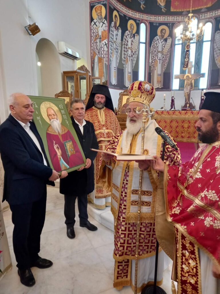 Με ιδιαίτερη λαμπρότητα εορτάσθηκε η μεγάλη Δεσποτική εορτή της Γεννήσεως του Κυρίου ημών Ιησού Χριστού στην Ιερά Μητρόπολή μας. Η πανηγυρική Θεία Λειτουργία τελέσθηκε στον Ιερό Μητροπολιτικό Ναό Αγίου Ανδρέου Αρχιεπισκόπου Κρήτης του Ιεροσολυμίτου στο Αρκαλοχώρι, προεξάρχοντος του Σεβ. Μητροπολίτου Αρκαλοχωρίου, Καστελλίου και Βιάννου κ. Ανδρέου. Στη Χριστουγεννίατικη Θεία Λειτουργία έλαβαν μέρος, ο Αρχιγραμματέας της Ιεράς Επαρχιακής Συνόδου της Εκκλησίας της Κρήτης Πανοσιολ. Αρχιμ. Νήφων Βασιλάκης, ο Προϊστάμενος του Ναού και αναπλ. Γενικός Αρχιερατικός Επίτροπος Πρωτ. Σπυρίδων Φουκαράκης, ο Οικονόμος Ιωάννης Καπελλάκης και ο Αρχιδιάκονος Μαρίνος Δασκαλάκης, ενώ το ιερό αναλόγιο διακόνησε ο Διάκονος Πέτρος Αράπογλου. Προ της απολύσεως ανεγνώσθη από τον Πανοσ. Αρχιμ. π. Νήφων, το εόρτιο Χριστουγεννιάτικο Μήνυμα του Σεβ. Μητροπολίτη μας κ. Ανδρέου. Μεταξύ άλλων, το παρών έδωσαν ο Δήμαρχος Μινώα Πεδιάδας κ.Μανόλης Φραγκάκης και ο Πρόεδρος του Περιφερειακού Συμβουλίου κ.Παύλος Μπαριτάκης. Μετά το πέρας της Θείας Λειτουργίας τοποθετήθηκε η εικόνα του Αγίου Ευμενίου σε προσκυνητάρι του Ναού.