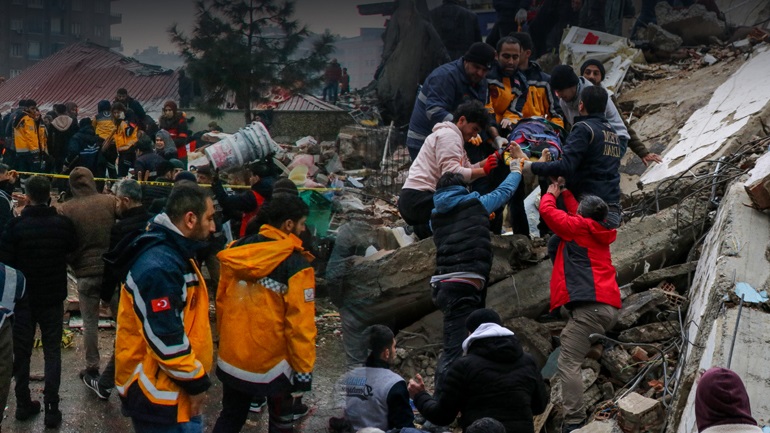 Οἱ συνάνθρωποί μας, τήν παρελθοῦσα Δευτέρα 06η Φεβρουαρίου, ἐπλήγησαν ἀπό τόν φονικό σεισμό τῶν 7,8 βαθμῶν τῆς κλίμακος ρίχτερ. Οἱ ἐπιζήσαντες θρηνοῦν γιά τούς νεκρούς των, πού ἀνέρχονται σέ πολλές χιλιάδες, ἀγωνιοῦν γιά τούς ἀγνοουμένους, καί μέσα στό κρύο καί τίς βροχές, ἀναζητοῦν στέγη καί εὑρίσκονται σέ ἀπόγνωση. Οἱ στιγμές εἶναι πολύ δύσκολες καί μᾶς φέρνουν στόν νοῦ καταστάσεις πού βιώσαμε καί ἐμεῖς στόν καταστροφικό σεισμό τῆς 27ης Σεπτεμβρίου 2021, ὅμως μέ ἕνα μόνο θύμα, τόν ἀείμνηστο Ἰάκωβο Τσαγκαράκη.