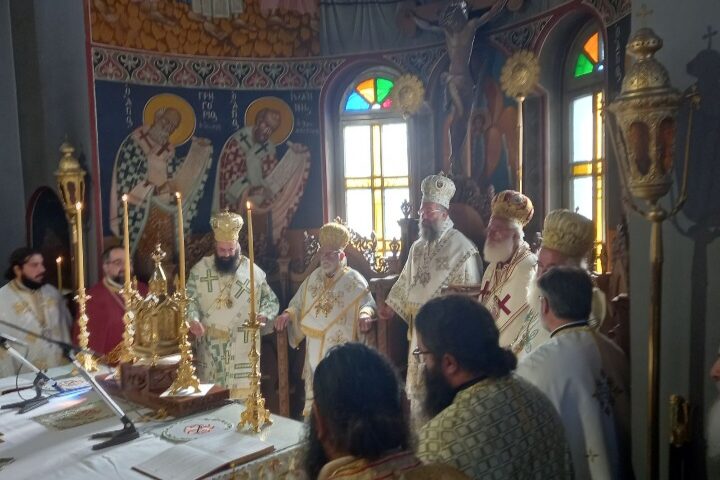 Το Σάββατο 24 Ιουνίου, εορτή της Γενέσεως του Αγίου ενδόξου Προφήτου Προδρόμου και Βαπτιστού Ιωάννου, ο Σεβ. Μητροπολίτης Ρεθύμνης και Αυλοποτάμου κ. Πρόδρομος εόρτασε τα ονομαστήριά του, στον Ιερό Μητροπολιτικό Ναό Εισοδίων της Θεοτόκου στο Ρέθυμνο. Στην ακολουθία του Όρθρου χοροστάτησε ο Σεβ. Μητροπολίτης Ανέων κ. Μακάριος. Της πολυαρχιερατικής Θείας Λειτουργίας πρεξήρχε ο οικείος Ιεράρχης, Σεβ. κ. Πρόδρομος και συλλειτούργησαν οι Σεβ. Αρχιερείς: Ανέων κ. Μακάριος, Πέτρας και Χερρονήσου κ. Γεράσιμος, Ιεραπύτνης και Σητείας κ. Κύριλλος και ο Ποιμενάρχης μας κ. Ανδρέας. Συμπροσευχόμενοι παρέστησαν ο Σεβ. Μητροπολίτης Λάμπης Συβρίτου και Σφακίων κ. Ειρηναίος, οι Επίσκοποι Αμορίου κ. Νικηφόρος και Ευμενίας κ. Ειρηναίος. Ο Σεβ. Ποιμενάρχης μας κ. Ανδρέας, αφού κήρυξε καταλλήλως, ευχήθηκε στον εορτάζοντα Ιεράρχη κ. Πρόδρομο, πλούσια τη χάρη του Τριαδικού Θεού και καλή δύναμη στο πολυεύθυνο έργο της Αρχιερατικής διακονίας του. Ο οικείος Μητροπολίτης κ. Πρόδρομος στον χαιρετισμό του, ευχαρίστησε τους αγίους Αρχιερείς για την παρουσία των την ημέρα των ονομαστηρίων του. Μεταξύ άλλων παρεβρέθησαν, ο Δήμαρχος Ρεθύμνης κ. Γιώργος Μαρινάκης, ο πρ. Υπουργός κ. Ιωάννης Κεφαλογιάννης, η Αντιπεριφερειάρχης Κρήτης κ. Μαρία Λιονή μετά του συζύγου της, Καθηγητού Ιατρικής κ. Χρήστου Λιονή, ο Διευθυντής Αστυνομίας κ. Μανόλης Παπαδάκης, καθώς και Ανώτατοι Αξιωματικοί, Άρχοντες του τόπου, εκπρόσωποι φορέων, Μοναστικές αδελφότητες, πλήθος Κληρικών και λαϊκών. Στην συνέχεια, οι Σεβ. Αρχιερείς μετεβησαν στην Ιερά Μονή Αγίας Ειρήνης όπου τέλεσαν τρισάγιο στον μακαριστό Μητροπολίτη Ρεθύμνης κυρό Θεόδωρο Τζεδάκη και παρακάθισαν στο εόρτιο γευμα.