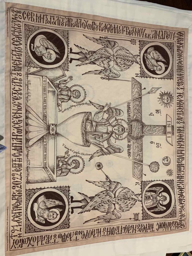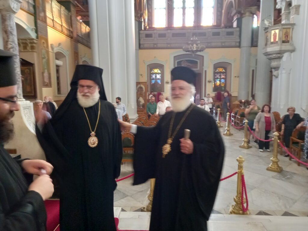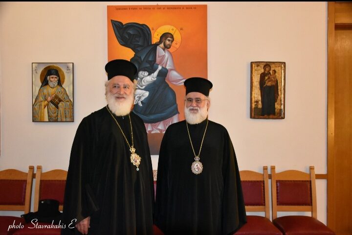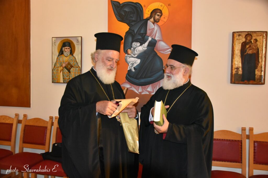 Ο Σεβ. Ποιμενάρχης μας κ. Ανδρέας μετέβη στον Ιερό Μητροπολιτικό Ναό Αγίου Μηνά Ηρακλείου, όπου ευχήθηκε εις τα ονομαστήρια του χοροστατούντος εις τον εσπερινό, Επισκόπου Κνωσού κ. Μεθοδίου. Παρέστησαν κληρικοί και λαϊκοί δια να ευχηθούν στον Θεοφιλέστατο κ. Μεθόδιο. Μεταξύ άλλων παρέστη ο Πρόεδρος του Περιφερειακού Συμβουλίου κ. Ευάγγελος Ζάχαρης. Ο σεπτός Ποιμενάρχης μας κ. Ανδρέας προσέφερε στον εορτάζοντα Ιεράρχη, αντιμήνσιο, αντίγραφο (2022) της Ι. Μητρόπολης Αρκαλοχωρίου, από το αντιμήνσιο του Αγίου Κυρίλλου Λουκάρεως (1622), φυλαττόμενο στο Μουσείο της Ι. Μονής Υψηλού της Ι. Μητροπόλεως Μυτιλήνης.
