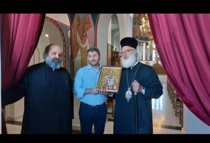 Στο Μητροπολιτικό Ναό Αρκαλοχωρίου προσκύνησε ο Πρόεδρος του ΠΑΣΟΚ-ΚΙΝΑΛ κ. Νίκος Ανδρουλάκης, μετά που ψήφισε σε εκλογικό κέντρο του Αρκαλοχωρίου. Ο Σεβασμιώτατος Ποιμενάρχης μας κ. Ανδρέας τον υποδέχθηκε και του προσέφερε την εικόνα του Αγίου Ανδρέου Αρχιεπισκόπου Κρήτης του Ιεροσολυμίτου.