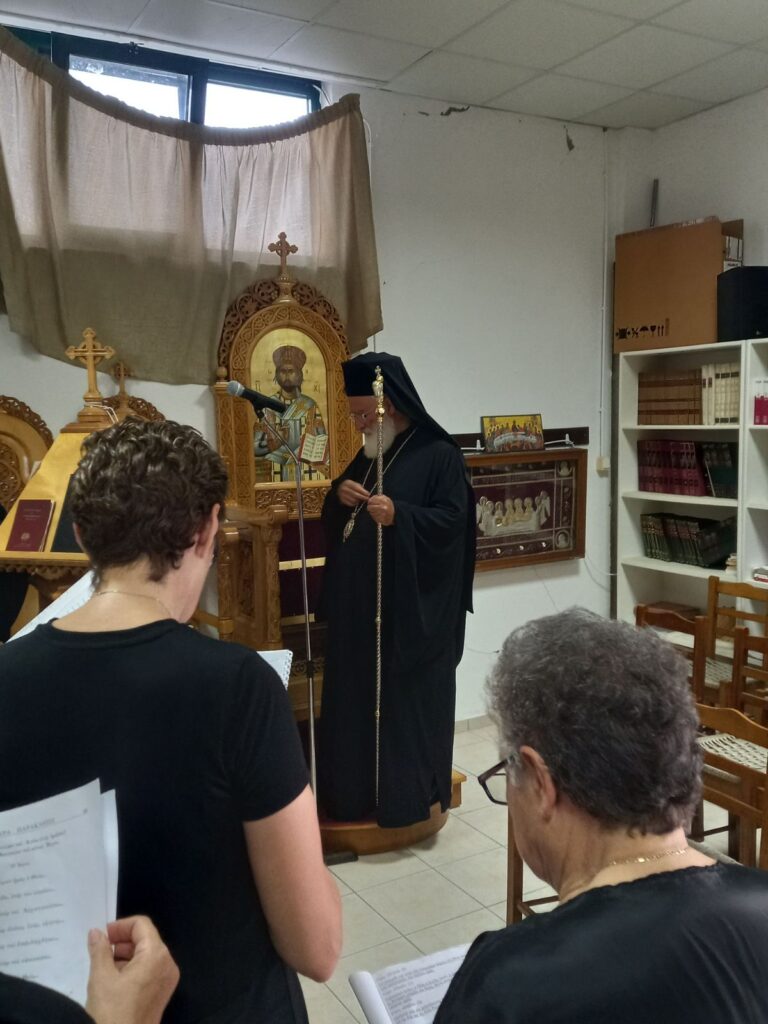 Το απόγευμα της Τρίτης 8 Αυγούστου, ο Σεβ. Μητροπολίτης μας κ. Ανδρέας χοροστάτησε στην ακολουθία του Παρακλητικού Κανόνος προς την Υπεραγία Θεοτόκο στην Ενορία Κάτω Πουλιών, όπου έψαλε χορωδία γυναικών υπό τη διεύθυνση του δασκάλου της Βυζαντινής Μουσικής Πρωτοπρεσβυτέρου π.Νικολάου Σταματάκη. Τέλος, ο σεπτός Ποιμενάρχης μας, ομίλησε επίκαιρα στο εκκλησίασμα προς το οποίο ευχήθηκε καλή Παναγιά. Η ακολουθία τελέστηκε σε ειδικά διαμορφωμένη αίθουσα που καλύπτει τις θρησκευτικές ανάγκες της ενορίας αφού οι ναοί έχουν πληγεί από τον σεισμό της 27ης Σεπτεμβρίου 2021.