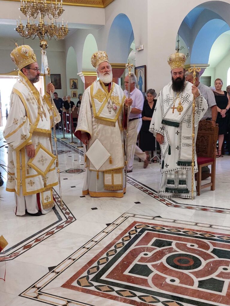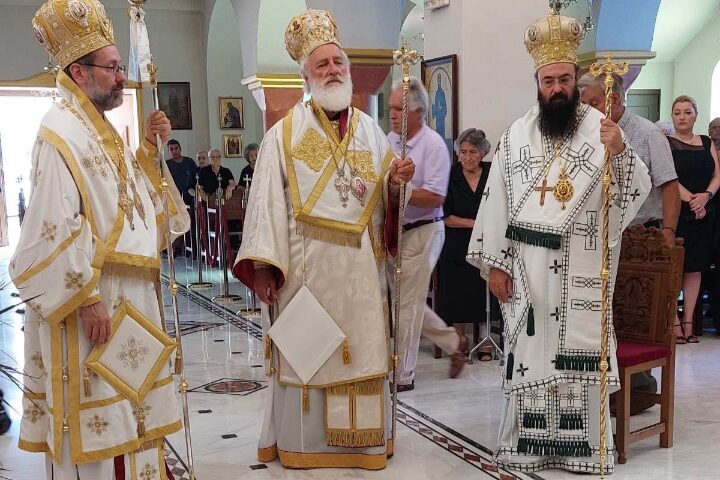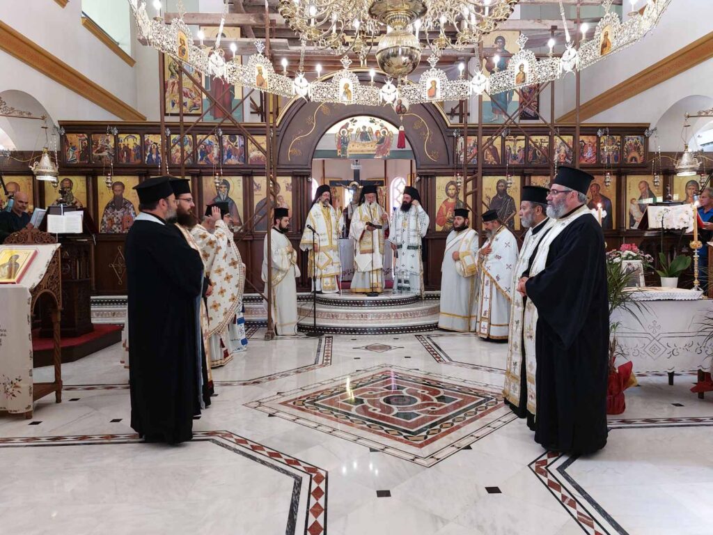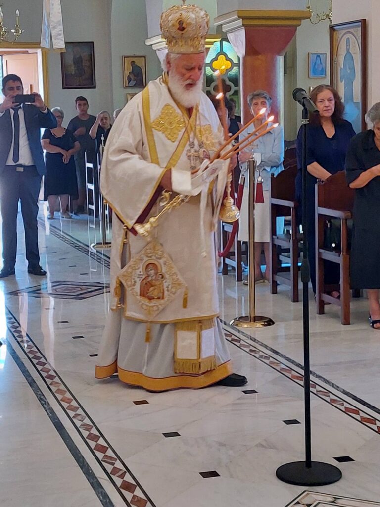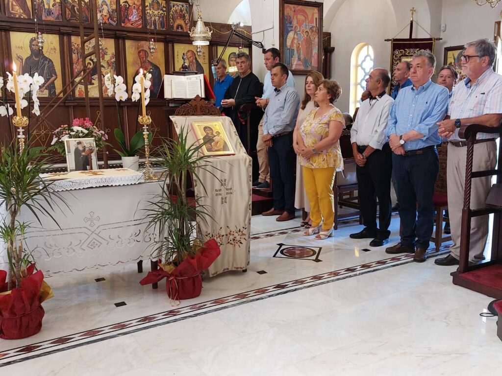 Ο Σεβ. Ποιμενάρχης μας κ. Ανδρέας το Σάββατο 12 Αυγούστου, μετέβη στον Ιερό Ναό Αγίου Αντωνίου της πόλεως του Αγίου Νικολάου όπου συλειτούργησε μετά του οικείου Ποιμενάρχη, Σεβ. Μητροπολίτου Πέτρας και Χερρονήσου κ. Γερασίμου και του Σεβ. Μητροπολίτου Πισιδίας κ. Ιώβ. Προ της απολύσεως τελέστηκε το τεσσαρακονθήμερο μνημόσυνο του μακαριστού Πρωτ. του Οικουμενικού Θρόνου και επί δεκαετίες Γενικού Αρχιερατικού Επιτρόπου της Ιεράς Μητροπόλεως Πέτρας και Χερρονήσου π. Γεωργίου Ατσαλάκη. Το Θείο λόγο κήρυξε ο Σεβ. Ποιμενάρχης μας. Αναφέρθηκε στην εξαιρετική καρδιά του εκλιπόντος Πρωθιερέως, ο οποίος με την σπάνια προσωπικότητα και τα δυσεύρετα αγιοπνευματικά χαρίσματά του, σφράγισε την εκκλησιαστική Ιστορία της τοπικής Εκκλησίας. Μεταξύ άλλων παρεβρέθησαν ο Περιφερειάρχης Κρήτης κ. Σταύρος Αρναουτάκης και ο Δήμαρχος Αγίου Νικολάου κ. Αντώνιος Ζερβός.