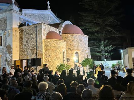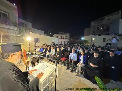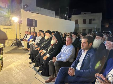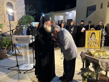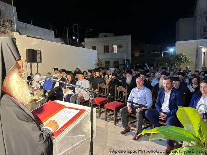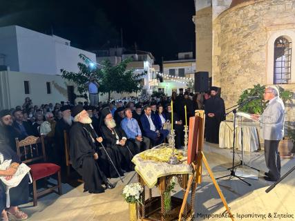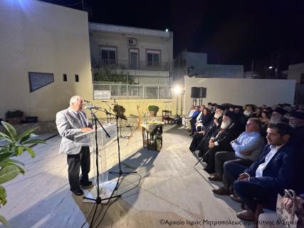 Απόψε, τιμάται η ελαχιστότητά μου, ο άμεσος διάδοχός του στην ιστορική Ιερά Μητρόπολη Ιεραπύτνης και Σητείας. Και τιμάται στο πρόσωπο του Μητροπολίτου ολόκληρη η Τοπική Εκκλησία. Και τιμάται με την ανώτατη τιμητική διάκριση του Ριζαρείου Ιδρύματος και της Ρ.Ε.Σ,, το Παράσημο και το Μετάλλιο του Αγίου Νεκταρίου, ο οποίος επί 14 συναπτά έτη διηύθυνε το Εκκλησιαστικό αυτό Καθίδρυμα.