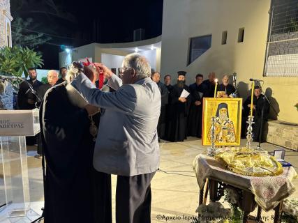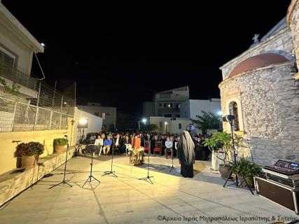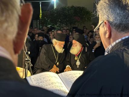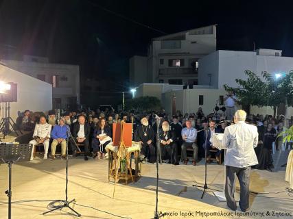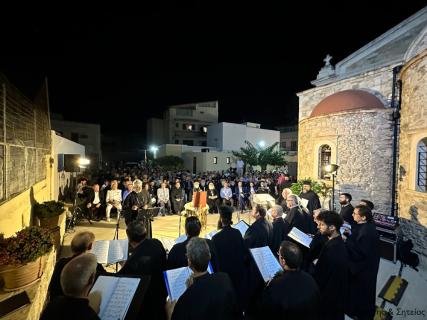 Ακολούθησαν ύμνοι από την Ακολουθία του Αγίου Νεκταρίου, τους οποίους απέδωσε αριστοτεχνικά η χορωδία των Ιεροψαλτών της Ιεράπετρας, με χοράρχη τον Πρωτοψάλτη του ναού και Δ/ντή της Σχολής Βυζ/νής Μουσικής της Ι. Μητροπόλεως «Άγιος Ανδρέας ο Κρήτης» κ. Ιωάννη Αρώνη.