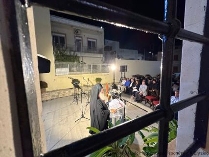 Η εκδήλωση ξεκίνησε με τα απολυτίκια του πολιούχου και προστάτη της Ιεράπετρας Αγίου Γεωργίου και του Αγίου Νεκταρίου από τη Χορωδία των Ιεροψαλτών. Ακολούθησε η τελετή απονομής στον Σεβ. Μητροπολίτη Ιεραπύτνης και Σητείας κ. Κύριλλο από το ισόβειο Μέλος του Πολυμελούς Συμβουλίου του Ριζαρείου Ιδρύματος, Τακτικό Μέλος της Ακαδημίας Αθηνών, Oμότιμο Καθηγητή Γλωσσολογίας του Εθνικού και Καποδιστριακού Πανεπιστημίου Αθηνών και συντοπίτη μας κ. Χριστόφορο Χαραλαμπάκη.