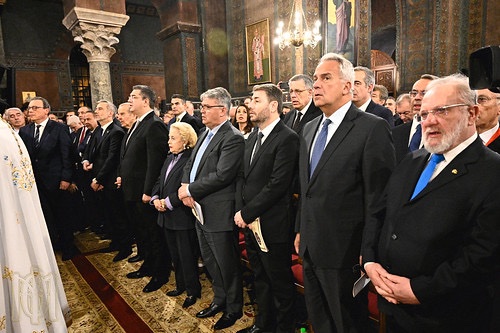 Τον Παναγιώτατο κ. Φιλόθεο χαιρέτισαν ο Μακαριώτατος Αρχιεπίσκοπος Αθηνών και πάσης Ελλάδος κ. Ιερώνυμος, ο εκπρόσωπος του Οικουμενικού Πατριάρχου κ.κ. Βαρθολομαίου, Σεβ. Μητροπολίτης Γέρων Χαλκηδόνος κ. Εμμανουήλ, ο εκπρόσωπος της Κυβερνήσεως, Υπουργός Επικρατείας κ. Μάκης Βορίδης, ο Περιφερειάρχης Κεντρικής Μακεδονίας κ.Απόστολος Τζιτζικώστας και ο Δήμαρχος Θεσσαλονίκης κ.Κωνσταντίνος Ζέρβας.