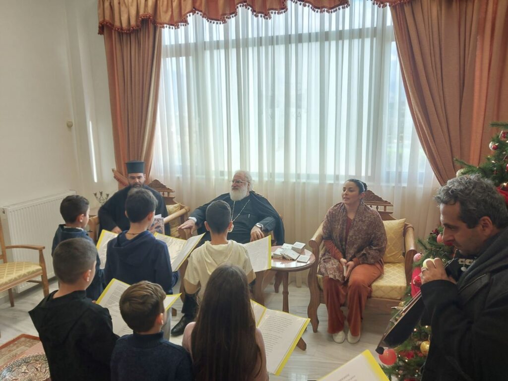 Επίσης, κάλαντα από όλη την Ελλάδα έψαλλαν στον Σεβασμιώτατο παιδιά από την Βιάννο, συνοδευόμενα απο τον εφημέριο π. Ιβάν Ντόμπρεφ.