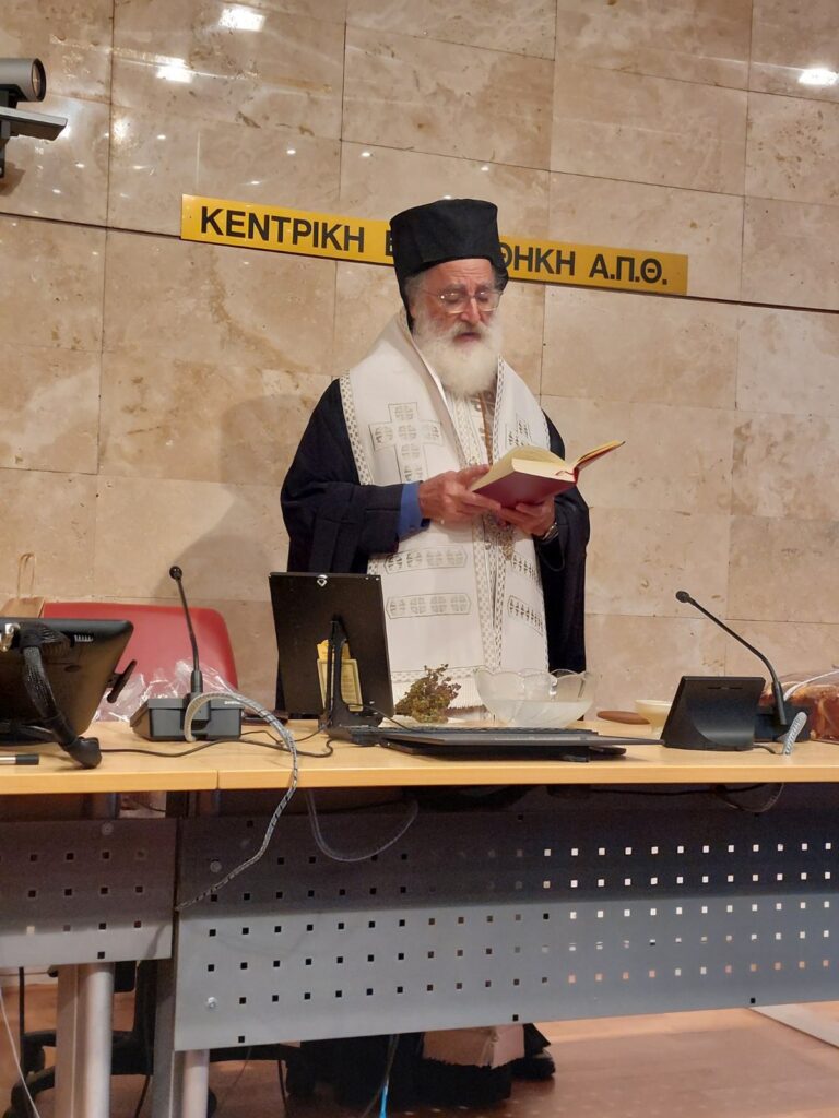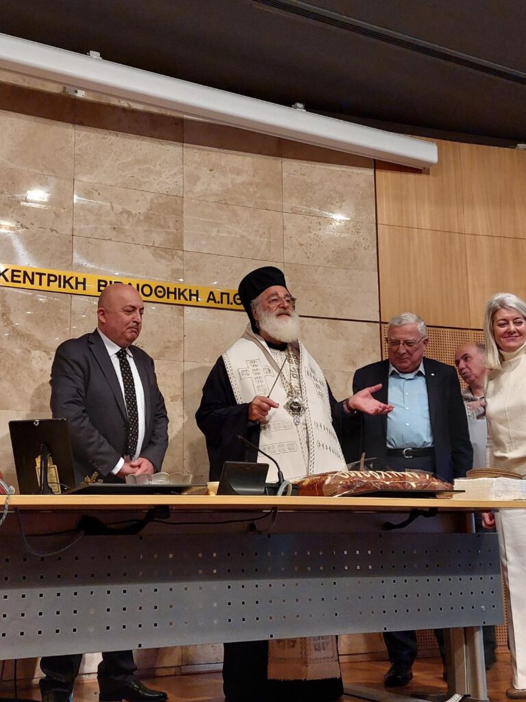 Ο Σεβ. Αρκαλοχωρίου κ. Ανδρέας την Δευτέρα 22 Ιανουαρίου τέλεσε τον αγιασμό και έκοψε τη βασιλόπιτα στην Βιβλιοθήκη του ΑΠΘ.