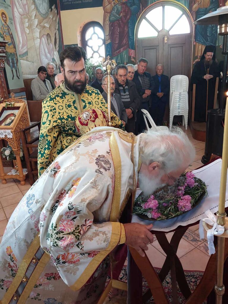 Με λαμπρότητα εορτάσθηκε η Κυριακή της Σταυροπροσκυνήσεως 7 Απριλίου 2024, στον κοιμητηριακό Ιερό Ναό Κοιμήσεως της Θεοτόκου στο Θραψανό Πεδιάδος, διότι ο κυρίως και μεγάλος Ναός του Τιμίου Σταυρού επλήγη από τον σεισμό της 27ης Σεπτεμβρίου 2021. Ο Σεβ. Ποιμενάρχης μας κ. Ανδρέας, χοροστάτησε στον Όρθρο και τέλεσε την Θεία Λειτουργία. Στον λόγο του ο σεπτός Ποιμενάρχης μας τόνισε την σημασία του Τιμίου Σταυρού στην ζωή κάθε Χριστιανού, καθώς και το λόγο για τον οποίο η Αγία μας Εκκλησία, ακριβώς στην μέση της Αγίας και Μεγάλης Τεσσαρακοστής, προβάλλει τον Σταυρό του Σωτήρος Χριστού, προκειμένου οι πιστοί να λάβουν δύναμη και να συνεχίσουν με ζήλο τον πνευματικό τους αγώνα, ώστε να εορτάσουν αξίως τα άχραντα πάθη Του Κυρίου ημών Ιησού Χριστού και την Αγία Του Ανάσταση. Τέλεσε τρισάγιο στη μνήμη του μακαριστού καθηγητή της Φιλοσοφικής Σχολής ΑΠΘ Βασίλη Άτσαλου. Μεταξύ άλλων παρέστη ο καθηγητής ΑΠΘ κ. Βασίλειος Τσίγκος μετά της συζύγου του και ο πρ. Δήμαρχος Θραψανού κ. Μανώλης Λαδωμένος.
