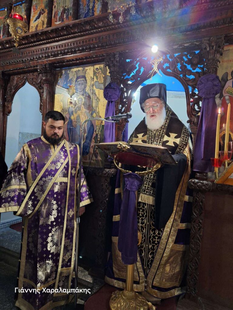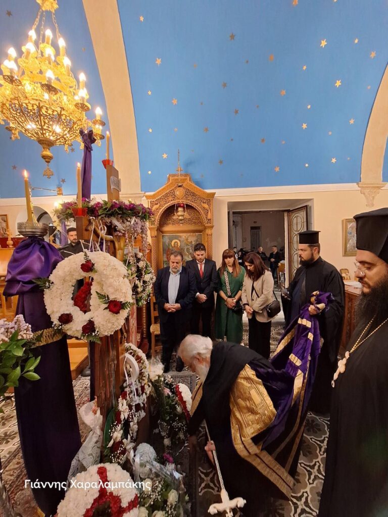 Ο Σεβ. Ποιμενάρχης μας κ. Ανδρέας, την Μεγάλη Πέμπτη το απόγευμα, χοροστάτησε στην ακολουθία των Αγίων Παθών του Κυρίου μας στον Ιερό Ναό Αγίου Γεωργίου στο Καστέλλι Πεδιάδος, διότι τον κυρίως Ναό του Αγίου Αντωνίου έπληξε ο σεισμός της 27ης Σεπτεμβρίου 2021. Στην ομιλία του ο σεπτός Ποιμενάρχης μας ευχήθηκε ο Παθών υπομείνας Κύριος, να ευλογεί τη ζωή μας και με το καλό να εορτάσουμε την Αγία Ανάσταση. Το παρών μεταξύ άλλων έδωσαν, ο Δήμαρχος Μινώα Πεδιάδος κ.Βασίλης Κεγκέρογλου μετά της συζύγου του, η Αντιδήμαρχος κα. Καλλιόπη Αποστολογιωργάκη, ο πυρηνικός Ιατρός του ΙΤΕ κ. Γιώργος Παπαδάκης, η Δημοτική Σύμβουλος κα. Έφη Καλυκάκη, η Πρόεδρος της Τοπικής Κοινότητας Καστελλίου κα. Μαρία Σκουλούδη, καθώς και πλήθος πιστών.