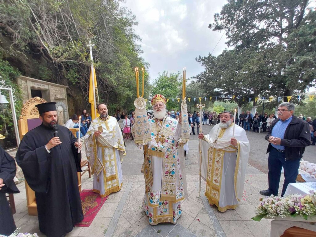 Σε Αναστάσιμο κλίμα, τελέστηκε ο Πανηγυρικός εσπερινός στην Ζωοδόχο Πηγή στο Ίνι Μονοφατσίου την Πέμπτη της Διακαινησίμου, 9 Μαΐου 2024. Ο Σεβασμιώτατος Ποιμενάρχης μας κ. Ανδρέας, χοροστάτησε του Εσπερινού και ομίλησε καταλλήλως στο εκκλησίασμα. Μεταξύ άλλων παρέστησαν ο Δήμαρχος Μινώα Πεδιάδος κ. Βασίλης Κεγκέρογλου, Αντιδήμαρχοι, Δημοτικοί Σύμβουλοι, ο Πρόεδρος του Πολιτιστικού Συλλόγου κ. Τίτος Κοκολάκης καθώς και πλήθος πιστών.