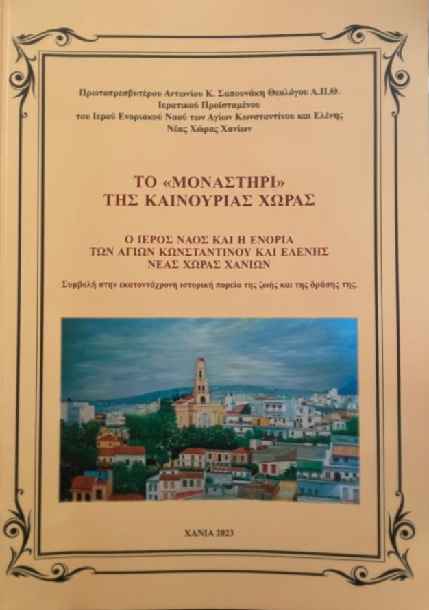 Την Κυριακή 12 Μαΐου 2024, πραγματοποιήθηκε με επιτυχία στο Πνευματικό Κέντρο της Ενορίας Αγίων Κωνσταντίνου και Ελένης Χανίων, η παρουσίαση του Βιβλίου με τίτλο «ΤΟ ΜΟΝΑΣΤΗΡΙ ΤΗΣ ΚΑΙΝΟΥΡΙΑΣ ΧΩΡΑΣ – Ο Ιερός Ναός και η Ενορία των Αγίων Κωνσταντίνου και Ελένης, Νέας Χώρας Χανίων>> του Πρωτοπρ. Αντωνίου Κ. Σαπουνάκη». Για το βιβλίο ομίλησαν, ο Σεβ. Μητροπολίτης μας και Καθηγητής του Αριστοτελείου Πανεπιστημίου Α.Π.Θ. κ. Ανδρέας προσκεκλημένος του Σεβ. Μητροπολίτη Κυδωνίας και Αποκορώνου κ. Δαμασκηνού, ο ομότιμος Καθηγητής του Τμήματος Ποιμαντικής και Κοινωνικής Θεολογίας του Α.Π.Θ. κ. Ηρακλής Ρεράκης και ο Αντιπεριφερειάρχης Τουρισμού κ. Κυριάκος Κώτσογλου. Εκφώνησαν κείμενα, η Δημοσιογράφος κα. Καίτη Βαρουδάκη – Αλέξη, η Φιλόλογος κα. Στέλλα Αλιγιζάκη και η κα. Θεοδώρα Λουφαρδάκη. Παρόντες στην εκδήλωση ήταν ο Σεβ. Μητροπολίτης Κυδωνίας και Αποκορώνου κ. Δαμασκηνός, ο Ομότιμος Καθηγητής Θεολογικής ΑΠΘ κ. Σταύρος Καλαϊτζάκης και ο πρώτος Διευθυντής της Ορθόδοξης Ακαδημίας Κρήτης δρ. Αλέξανδρος Παπαδερός.