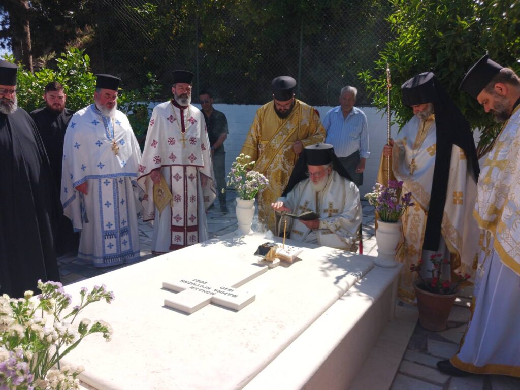 Το Σάββατο 25 Μαΐου 2024, ο Σεβ. Μητροπολίτης μας κ. Ανδρέας τέλεσε Θεία Λειτουργία στην Ιερά Μονή Αγίας Μαρίνας Βόνης. Προ της απολύσεως τελέστηκε το ετήσιο μνημόσυνο της μακαριστής Ηγουμένης, Γερόντισσας Μαρίνας. Ο σεπτός Ποιμενάρχης μας στην ομιλία του, αναφέρθηκε στο πρόσωπο της μακαριστής Γερόντισσας. Τέλος, τέλεσε τρισάγιο επί του τάφου και στην συνέχεια προσφέρθηκε τράπεζα μακαρισμού.
