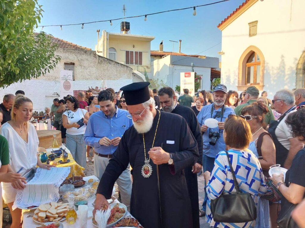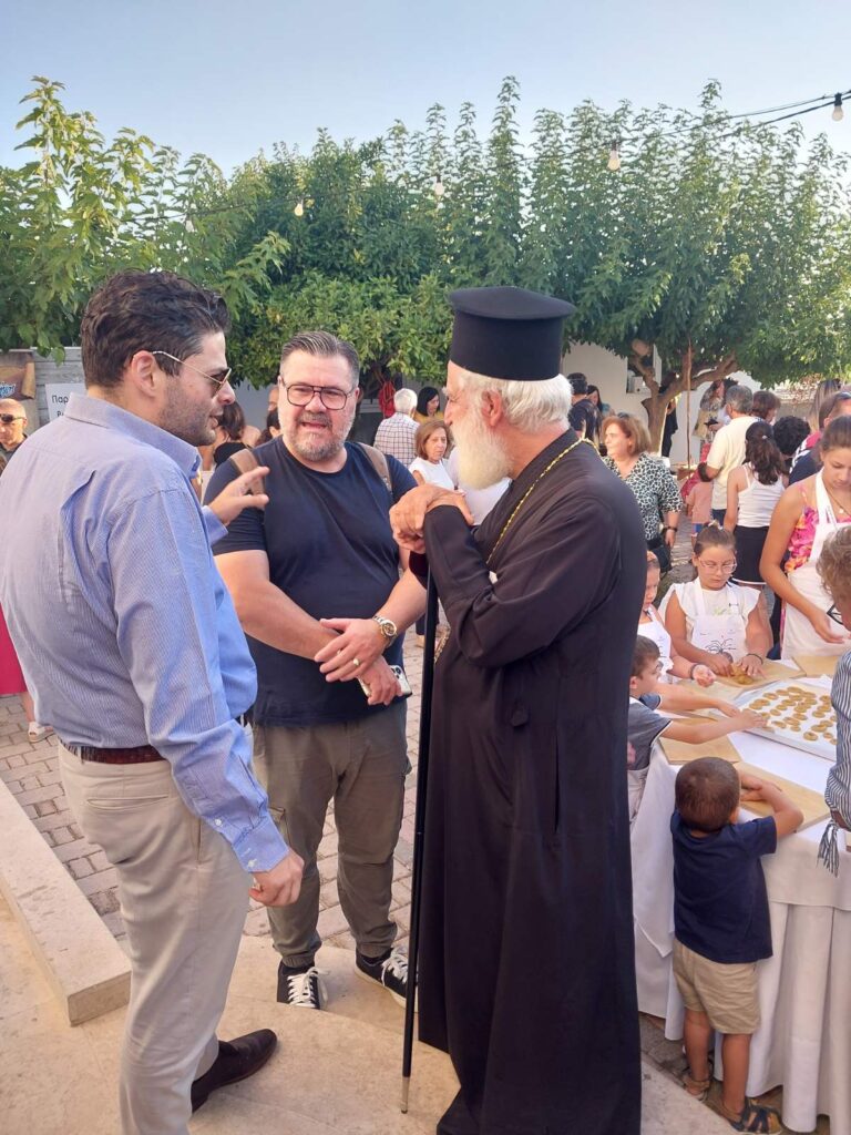 Το απόγευμα της Κυριακής 4 Αυγούστου, ο Σεβ. Μητροπολίτης μας κ. Ανδρέας χοροστάτησε στην ακολουθία του Μεγάλου Παρακλητικού Κανόνος προς την Υπεραγία Θεοτόκο στην Ενορία Πολυθέας. Ο σεπτός Ποιμενάρχης μας, ευχήθηκε στο εκκλησίασμα καλή Παναγιά. Στην συνέχεια, ο Σεβασμιώτατος παρακολούθησε και χαιρέτισε την εκδήλωση που οργάνωσε ο Σύλλογος Φεστιβάλ Κρητικής Κουζίνας με την υποστήριξη της Περιφέρειας Κρήτης, του Δήμου Μινώα Πεδιάδας, της Ενορίας Πολυθέας και του τοπικού Συμβουλίου με θέμα: “10ο Φεστιβάλ Κρητικής Κουζίνας”. Στην εκδήλωση παρουσιάστηκαν ζωντανά παραδοσιακά μαγειρέματα από όλη την Κρήτη, η τέχνη της πανεροπλεκτικής και η τέχνη κεραμικής. Παρέστησαν ο Δήμαρχος Μινώα Πεδιάδος κ.Βασίλης Κεγκέρογλου, οι Αντιπεριφερειάρχες Κρήτης κ. Νίκος Ξυλούρης και κα. Γεωργία Μηλάκη, ο Ιατρός και πρ. Αντιπεριφερειάρχης κ. Λάμπρος Βαμβακάς, ο εκδότης της εφημερίδας “ΠΑΤΡΙΣ” κ. Κώστας Ξυλούρης, ο Πυρηνικός Ιατρός και Καθηγητής ΙΤΕ κ. Γιώργος Παπαδάκης καθώς και πλήθος κόσμου.