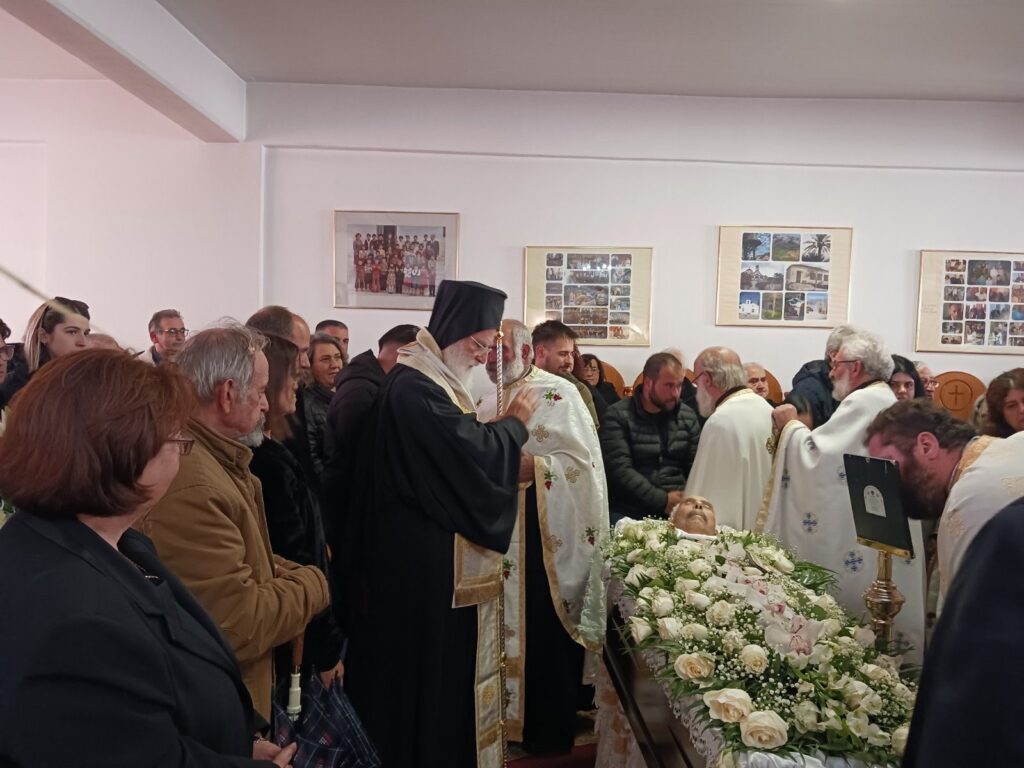 Την Τρίτη 24 Δεκεμβρίου 2024 το μεσημέρι, Σεβ. Μητροπολίτης μας κ. Ανδρέας, τέλεσε στα Ρουσσοχώρια Πεδιάδος, την εξόδιο ακολουθία του μακαριστού Ιωάννη Βλαστού. Ο αείμνηστος Ιωάννης υπήρξε κατα σάρκα πατέρας του Πρεσβυτέρου π. Κίμων Βλαστού, εφημέριου Αποστόλων Πεδιάδος και κτήτορας του Ιερού Ναού, Αγίας Σοφίας, Πίστεως, Ελπίδος και Αγάπης της ενορίας Ρουσσοχωρίων. Ο σεπτός Ποιμενάρχης μας ομίλησε για το μυστήριο του θανάτου, εξαιρώντας παράλληλα τη ζωή του εκλιπόντος και ανέφερε πόσο σημαντικό γεγονός είναι μια οικογένεια να οικοδομή έναν Ναό και να παραδίδει ένα κληρικό στην Εκκλησία μας. Τέλος, συλληπήθηκε και ευχήθηκε Κύριος ο Θεός να τον κατατάξει μετά των Αγίων και Δικαίων.