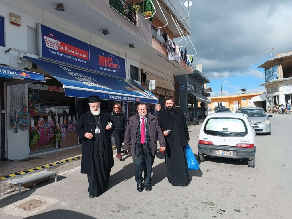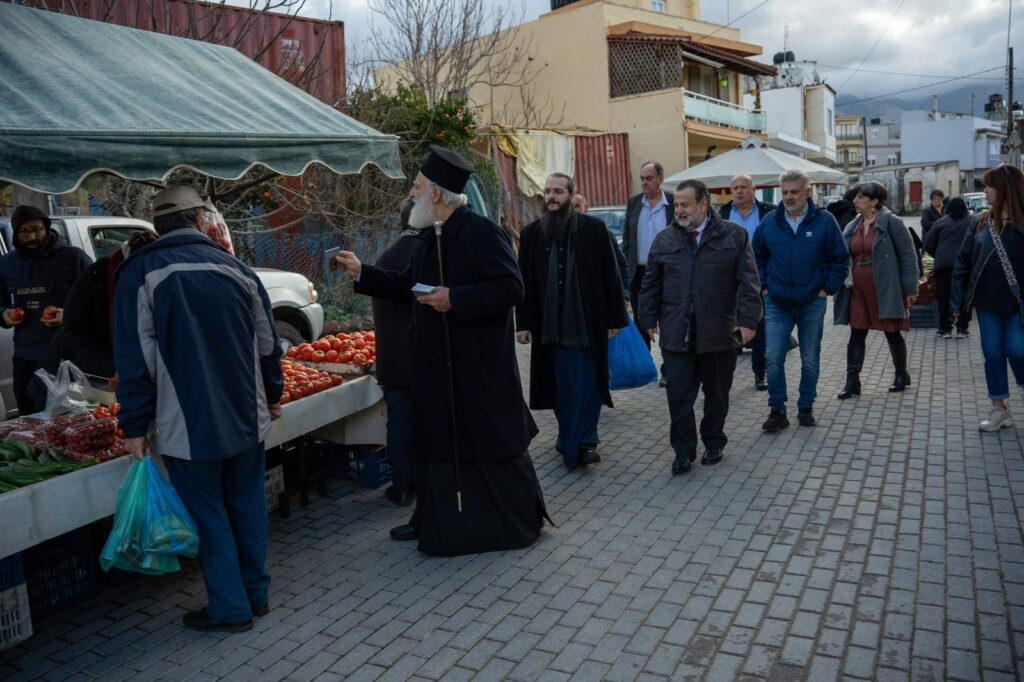 Την Τρίτη 31 Δεκεμβρίου 2024 το πρωί, ο Σεβ. Μητροπολίτης μας κ. Ανδρέας μετά του Δημάρχου κ. Βασίλη Κεγκέρογλου, του Προέδρου του Δημοτικού Συμβουλίου κ. Γιώργου Καλογεράκη, Αντιδημάρχων και Δημοτικών Συμβούλων επισκέφθηκαν την κεντρική αγορά του Καστελλίου και στην συνέχεια του Αρκαλοχωρίου, όπου συνομίλησαν με τους πολίτες ανταλλάσοντας εόρτιες ευχές για καλή και ευλογημένη χρονιά. Ο Σεβασμιώτατος διένειμε ως ευλογία, το ημερολόγιο του 2025 της καθ’ ημάς Ιεράς Μητροπόλεως που είναι αφιερωμένο στην Οσία Μαρία την Αιγυπτία.