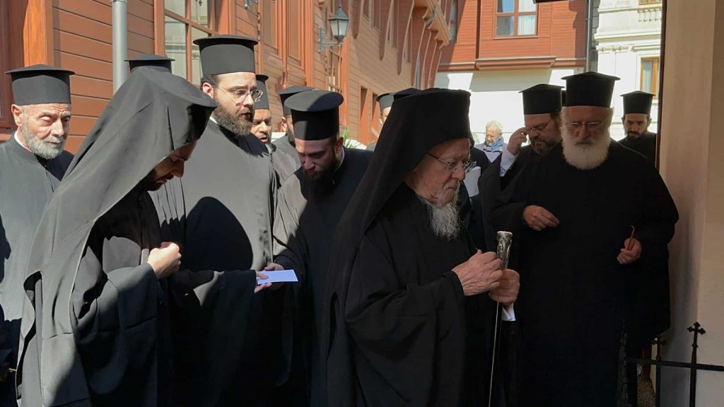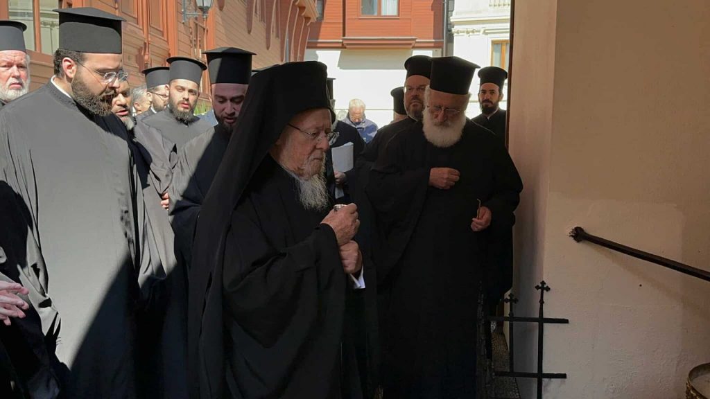 Ο Πατριάρχης, μέσα σε συγκινητική σιωπή, περιστοιχούμενος από τους Αρχιερείς που συγκροτούν την Αγία και Ιερά Σύνοδο και τα μέλη της Πατριαρχικής Αυλής, γονυπετής προσευχήθηκε λίγα λεπτά στον ιερό αυτό τόπο για την ενίσχυση της διακονίας της Αγίας του Χριστού Μεγάλης Εκκλησίας και για την πνευματική πρόοδο των ανά την οικουμένη τέκνων της, καθώς επίσης και για την επικράτηση της ειρήνης και της δικαιοσύνης στις δοκιμαζόμενες από πολέμους και συγκρούσεις περιοχές του πλανήτη. Στο τέλος, μέσα σε κλίμα κατάνυξης, εψάλη το απολυτίκιο του Αγίου.