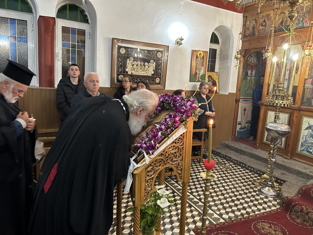 Με κατάνυξη τελέστηκε το απόγευμα της Μεγάλης Δευτέρας η Ακολουθία του Νυμφίου, στον Ιερό Ναό Αγίας Μακρίνας στα Φιλίσια Πεδιάδος. Στην ακολουθία χοροστάτησε εκ του παραθρονίου, ο Σεβ. Ποιμενάρχης μας κ. Ανδρέας. Στο τέλος της ακολουθίας ο Σεβασμιώτατος ομίλησε σχετικώς και ευχήθηκε καλή πορεία προς την Αγία Ανάσταση.