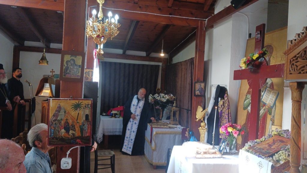 Το Σάββατο 10 Μαΐου το απόγευμα, ο Σεβ. Μητροπολίτης μας κ. Ανδρέας μετέβη στο Καλό Χωριό Μονοφατσίου όπου χοροστάτησε στον εσπερινό που τελέστηκε στον πρόναο του Ιερού Ναού Αγίου Γεωργίου, διότι ο υπόλοιπος ναός έχει υποστεί μεγάλες ζημιές από τον καταστροφικό σεισμό της 27ης Σεπτεμβρίου 2021. Προ της απολύσεως τελέστηκε το εννιαήμερο μνημόσυνο της μακαριστής Βασιλείας Γενιτσαρίδη. Ο σεπτός Ποιμενάρχης μας ομίλησε καταλλήλως στο εκκλησίασμα και ευχήθηκε ο Αναστάς Χριστός να κατατάξει την αδελφή μας Βασιλεία μετά των Αγίων.