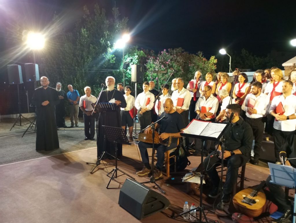 Στην συνέχεια, πραγματοποιήθηκε η μουσική εκδήλωση που διοργάνωσε η ενορία με την στήριξη του Δήμου Μινώα Πεδιάδας αφιερωμένη στην Κοίμηση της Υπεραγίας Θεοτόκου. Στην εκδήλωση ομίλησε ο Πρωτοσύγκελλος μας, Πανοσιολ. Αρχιμ. Επιφάνιος Ζαχαράκης με θέμα: ‘’Κοίμηση της Θεοτόκου, θάνατος γεμάτος ζωή’’. Στη συνέχεια αποδόθηκαν ύμνοι από την χορωδία της Ιεράς Μητροπόλεως υπό την διεύθυνση του π. Νικολάου Σταματάκη. Ο Σεβασμιώτατος εξέφρασε την χαρά του για την εκδήλωση και ευχαρίστησε τον εφημέριο π. Μαρίνο Δασκαλάκη, μετά του Εκκλησιαστικού Συμβουλίου και όλους όσους συνετέλεσαν στην άρτια διεξαγωγή της εκδηλώσεως. Μεταξύ άλλων παρέστησαν: ο Δήμαρχος Μινώα Πεδιάδας κ. Βασίλης Κεγκέρογλου, ο Καθηγητής ΙΤΕ, Περιφερειακός Σύμβουλος κ. Γιώργος Παπαδάκης, ο Πρόεδρος του Δημοτικού Συμβουλίου κ. Γιώργος Καλογεράκης, ο Αντιδήμαρχος κ. Εμμανουήλ Κουρλετάκης καθώς και η Πρόεδρος της Τοπικής Κοινότητας Καστελλίου κα. Μαρία Σκουλούδη.