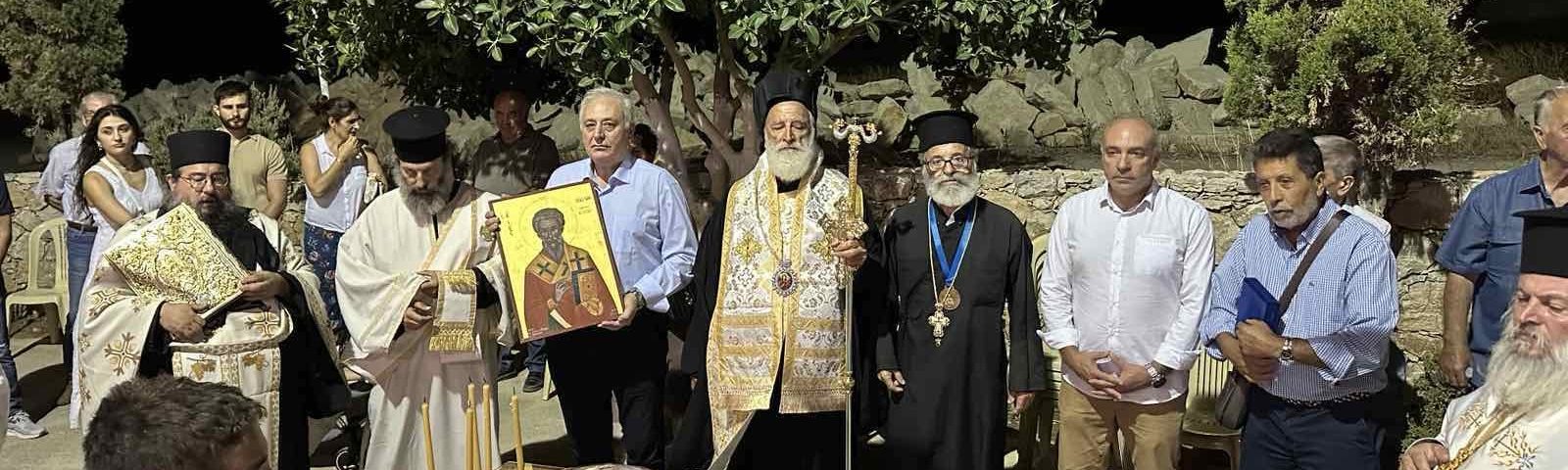 Την Πέμπτη 7 Αυγούστου 2025, παραμονή της εορτής του Αγίου Μύρωνος Επισκόπου Κρήτης, ο Σεβ. Ποιμενάρχης μας κ. Ανδρέας χοροστάτησε του Εσπερινού στον πανηγυρίζοντα Ιερό Ναό στο Καστρί Βιάννου και ομίλησε στο εκκλησίασμα για τον τιμώμενο Άγιο. Προ της απολύσεως, ο Σεβ. Μητροπολίτης μας τίμησε τον συνταξιούχο εφημέριο της ενορίας, π. Γεώργιο Βεληβασάκη με το μετάλλιο του Αγίου Ανδρέα Αρχιεπισκόπου Κρήτης και της Αγίας Μαρίνας, ως ένδειξη ευχαριστίας για την ανέγερση του ωραιοτάτου Ιερού Ναού του Αγίου Μύρωνος και γενικότερα για την προσφορά του στην τοπική εκκλησία.