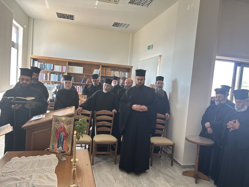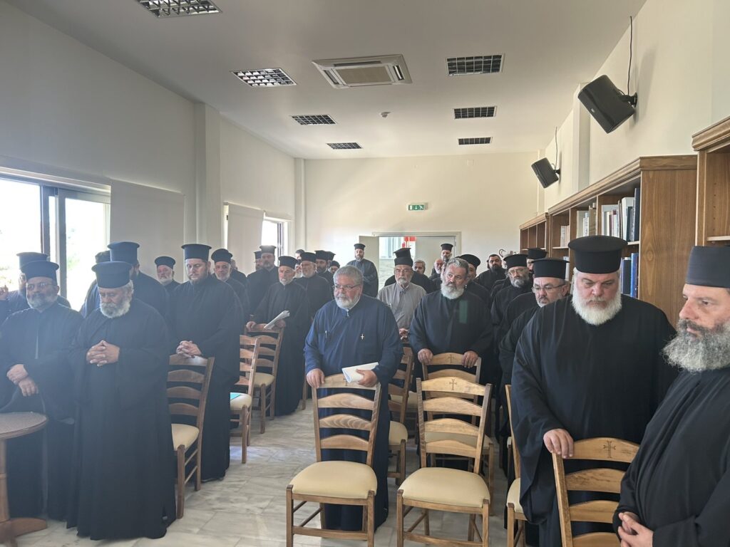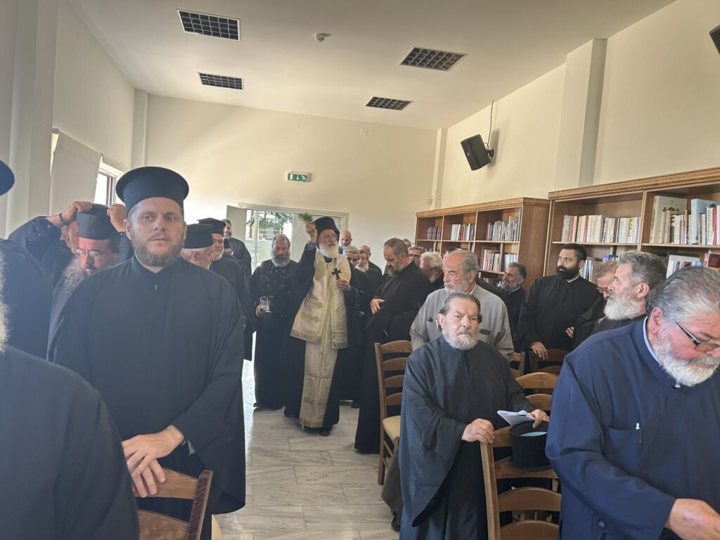 Την Τετάρτη 1 Οκτωβρίου 2025, στην αίθουσα συνεδριάσεων του Πολιτιστικού Πολύκεντρου της Ι. Μητροπόλεως, πραγματοποιήθηκε Ιερατική Σύναξη κατά την οποία παρέστη το σύνολο των κληρικών. Αρχικά, ο Σεβασμιώτατος τέλεσε την ακολουθία του Αγιασμού δια την αρχή του εκκλησιαστικού έτους, καθώς είναι η πρώτη Ιερατική Σύναξη. Στην συνέχεια, ομίλησε για θέματα πνευματικά και διοικητικά. Ακολούθησε συζήτηση με τους Ιερείς, σε ερωτήματα που έθεσαν για τα παραπάνω θέματα.