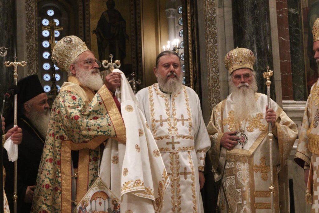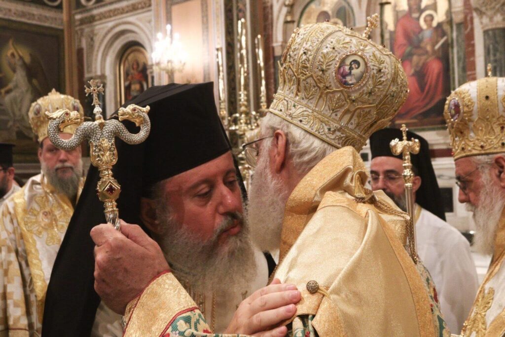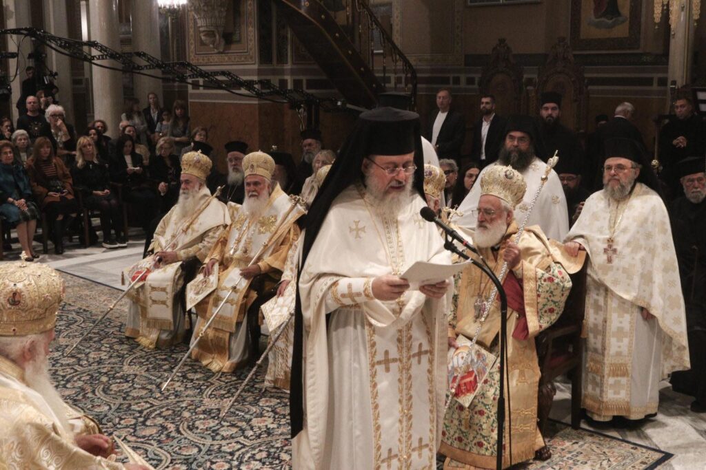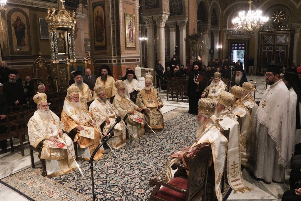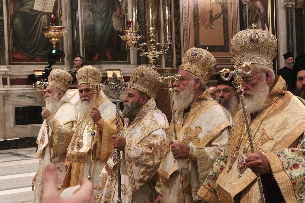 Συλλειτούργησαν οι Σεβασμιώτατοι Μητροπολίτες Αρκαλοχωρίου, Καστελλίου και Βιάννου κ. Ανδρέας, Μεσογαίας και Λαυρεωτικής κ. Νικόλαος, Ιλίου, Αχαρνών και Πετρουπόλεως κ. Αθηναγόρας, Νέας Ιωνίας, Φιλαδελφείας, Ηρακλείου και Χαλκηδόνος κ. Γαβριήλ, Ιωαννίνων κ. Μάξιμος, Νέας Κρήνης και Καλαμαριάς κ. Ιουστίνος, Λήμνου και Αγίου Ευστρατίου κ. Ιερόθεος, Μαντινείας και Κυνουρίας κ. Επιφάνιος και Κορίνθου κ. Παύλος.