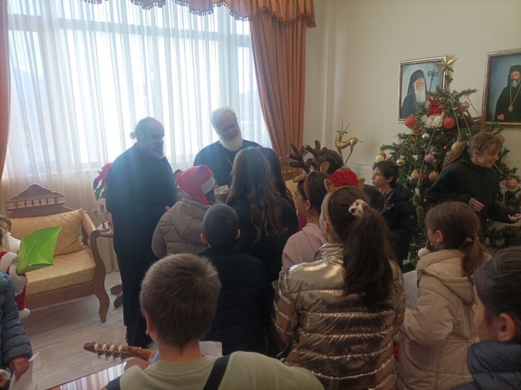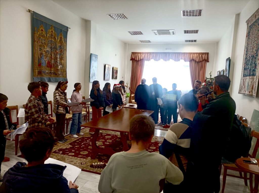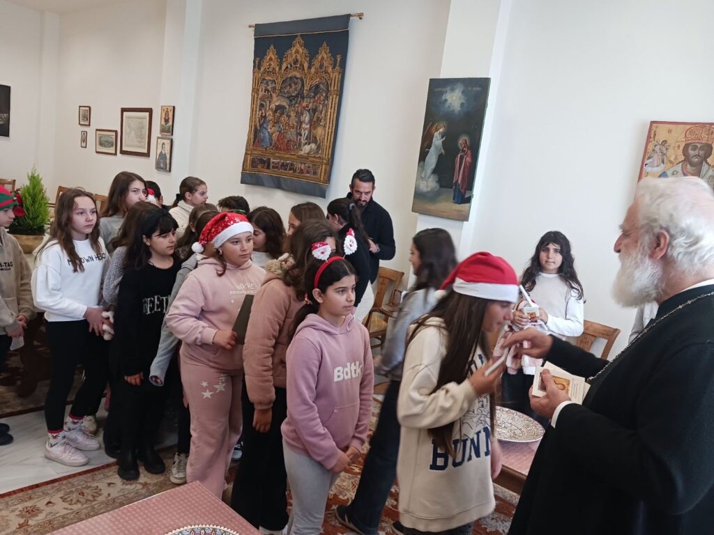 Την Τρίτη 23 Δεκεμβρίου, στο Πολιτιστικό Πολύκεντρο της Μητροπόλεως προσήλθαν και έψαλλαν παραδοσιακά κάλαντα στον Σεβ. Ποιμενάρχη μας κ. Ανδρέα, παιδιά από τα Κατηχητικά Σχολεία της Ενορίας Βιάννου. Στην συνέχεια, ακολούθησαν μαθητές του 1ου και 2ου Δημοτικού Σχολείου Αρκαλοχωρίου, όπου επίσης έψαλλαν κάλαντα με μουσικά όργανα. Ο Σεβασμιώτατος, εξέφρασε τη χαρά του για την επίσκεψη των παιδιών, και τους ευχήθηκε εγκαρδίως καλά και ευλογημένα Χριστούγεννα και καλές γιορτές.