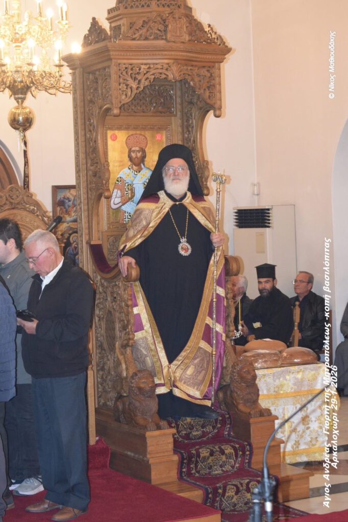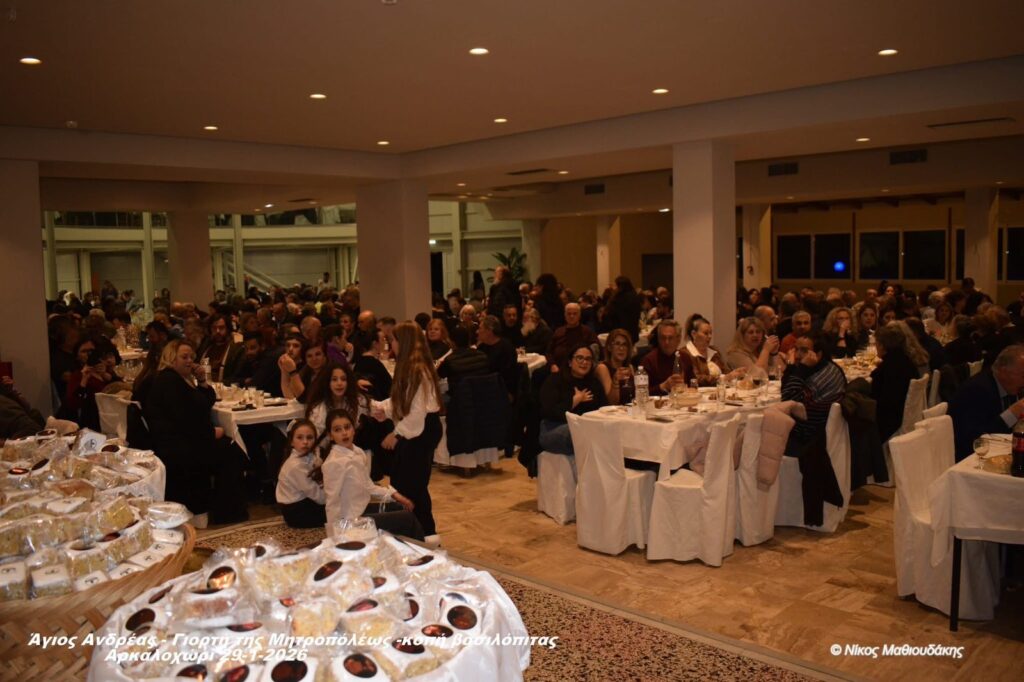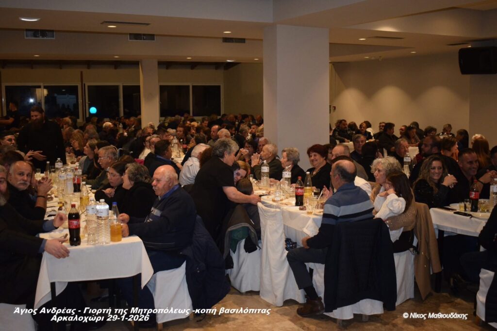 Σε εορταστικό κλίμα πραγματοποιήθηκε την Πέμπτη 29 Ιανουαρίου 2026, παραμονή της εορτής των τριών Ιεραρχών, η καθιερωμένη εκδήλωση κοπής Αγιοβασιλόπιτας της Ιεράς Μητροπόλεώς μας στον πανηγυρίζοντα Ιερό Μητροπολιτικό Ναό Αγίου Ανδρέα Αρχιεπισκόπου Κρήτης στο Αρκαλοχώρι, το αριστερό κλίτος του οποίου είναι αφιερωμένο στους Τρεις Ιεράρχες. Σύνολη ήταν η παρουσία των Ιερέων, ιεροψαλτών, νεωκόρων και των εκκλησιαστικών συμβούλων.