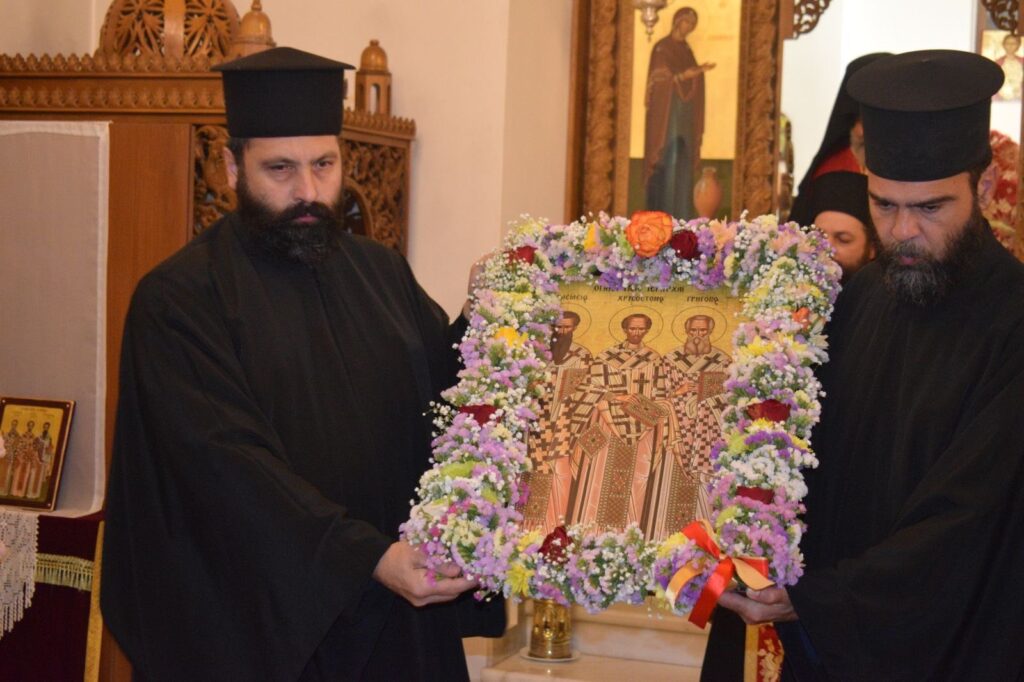 Τελέστηκε ο Αρχιερατικός Εσπερινός χοροστατούντος του Σεβ. Ποιμενάρχη μας κ. Ανδρέα. Στον θείο λόγο του αναφέρθηκε συνοπτικά στα τιμώμενα πρόσωπα των Αγίων Τριών Φωστήρων της Εκκλησίας μας και Προστατών της Ελληνικής Παιδείας, ενώ εξέφρασε τη χαρά του για την παρουσία όλων. Τέλος, τελέστηκε τρισάγιο στις πέντε γυναίκες που απανθρακώθηκαν στην μπισκοτοβιομηχανία στα Τρίκαλα και στους επτά φιλάθλους του ΠΑΟΚ που έχασαν την ζωή τους σε τροχαίο. Εν συνεχεία, η Ιερά Μητρόπολη τίμησε με το μετάλλιο του Αγίου Ανδρέα και της Αγίας Μαρίνας, για την προσφορά τους στην μάθηση, στην κοινωνία του Αρκαλοχωρίου και της ευρύτερης περιοχής, τους πρ. Διευθυντές του Γενικού Λυκείου Αρκαλοχωρίου κ. Αθανάσιο Μάνταρα και κ. Ιωάννη Παναγιωτάκη καθώς επίσης και την πρ. Διευθύντρια του ΕΠΑΛ Αρκαλοχωρίου κα. Ευανθία Ζγώνη.