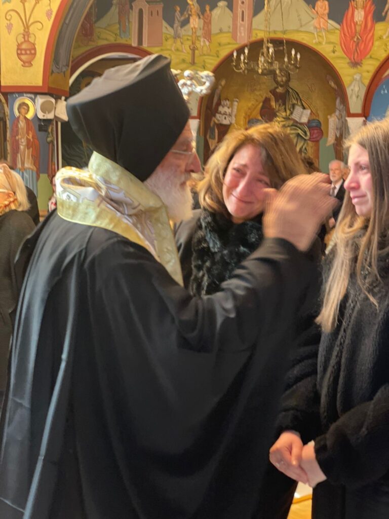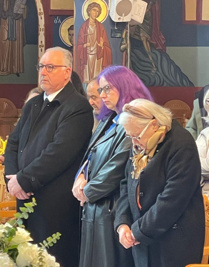 Παρέστησαν ο Κοσμήτορας Πρωτ. κ. Αθανάσιος Γκίκας, ο Πρόεδρος του Τμήματος κ. Ηλίας Ευαγγέλου, με πολλούς άλλους καθηγητές. Συντετριμμένοι ήταν η θυγατέρα του Χριστίνα μετά του συζύγου της και οι δύο εγγονές του Αλεξάνδρα και Μαρία.