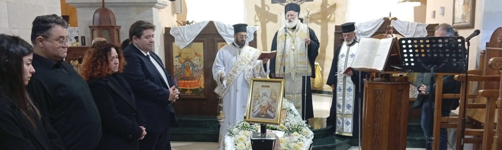 Την Κυριακή 15 Μαρτίου το μεσημέρι, ο Σεβασμιώτατος Μητροπολίτης μας κ. Ανδρέας μετέβη στον Ιερό Ναό Αγίου Ιωάννου του Θεολόγου στον Αχεντριά Αστερουσίων, όπου τέλεσε τρισάγιο έμπροσθεν του σκηνώματος του μακαριστού Γεωργίου Καραμαλάκη, κατά σάρκα πατέρα του Στρατηγού Μιχάλη Καραμαλάκη. Στην συνέχεια, ακολούθησε ο ενταφιασμός στο κοιμητήριο της ενορίας.